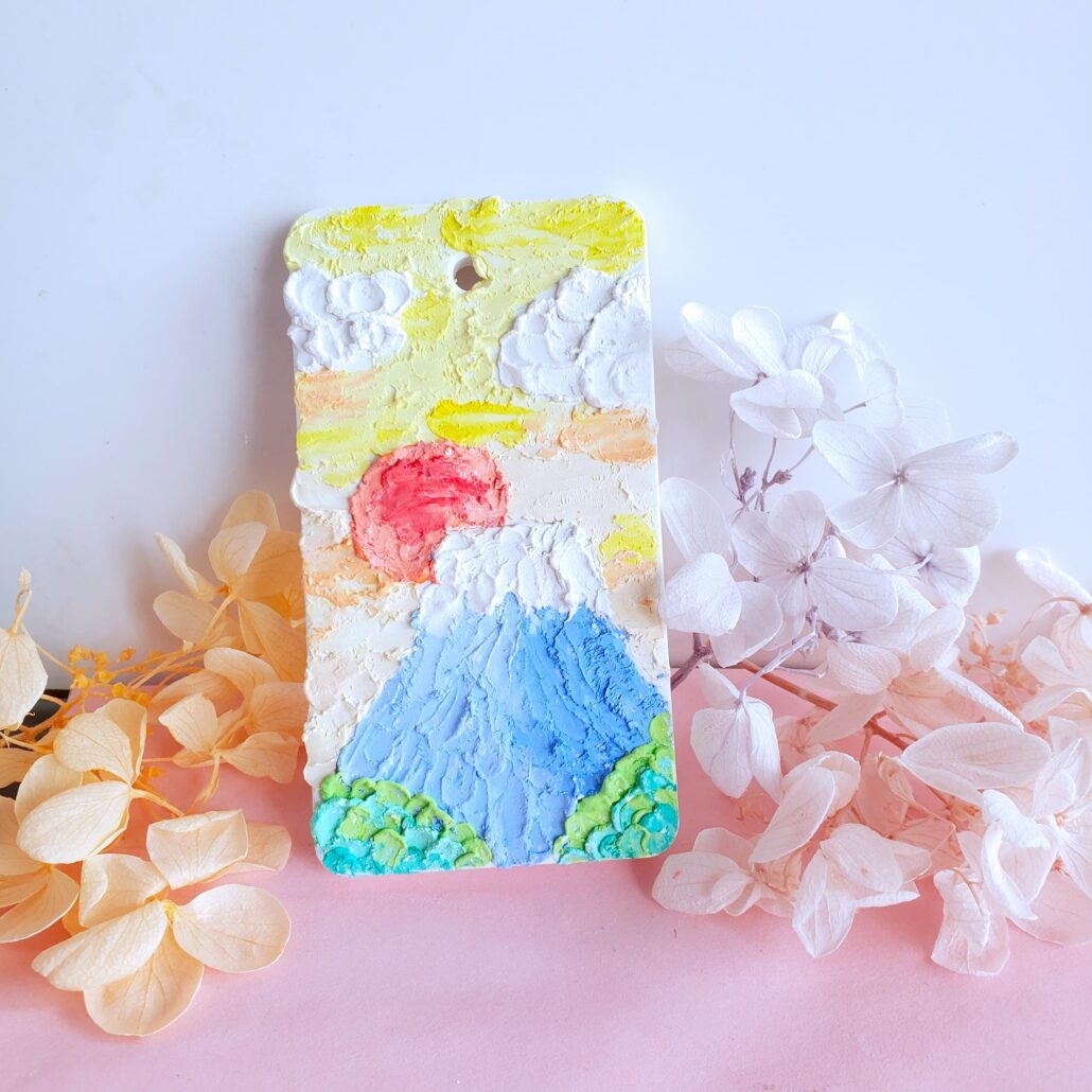 B 富士山浮雕畫擴香石 (尺寸5x9x0.8cm) 連絲帶及一支香薰精油 (3ml)