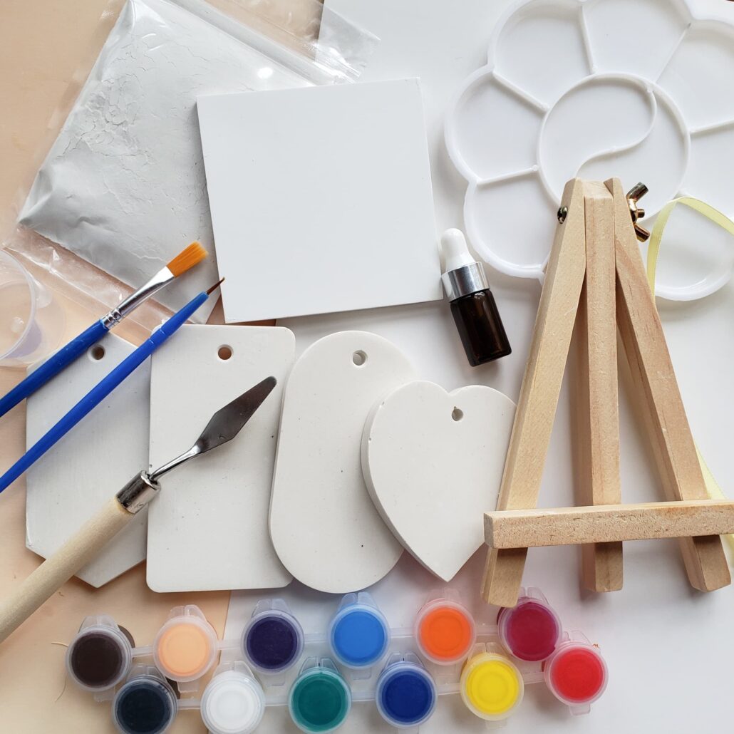 • 提供13色石膏專用顏料,包括紅色、深粉紅、橙色、黃色、綠色、淺藍色、深藍色、深紫色、杏色、啡色、黑色、白色等,以及超過10款具有不同氣味及功效的香薰精油,包括,牛奶、水蜜桃、百合花、月桂、大吉嶺茶、風羚蘭花、金盞花、生薑、薄荷、薰衣草、香橙等,供參加者自由混合配搭,並隨喜好選擇喜愛揀選香薰精油,而只需調節精油用量便可以輕易控制精油氣味濃淡度,約一週左右氣味揮發後只需添加精油即可回復香氣