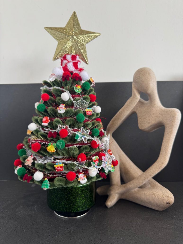 A 扭扭毛毛聖誕樹連圓形音樂盒底座一件 (製作完成後尺寸: 高約25cm, 闊約12cm)