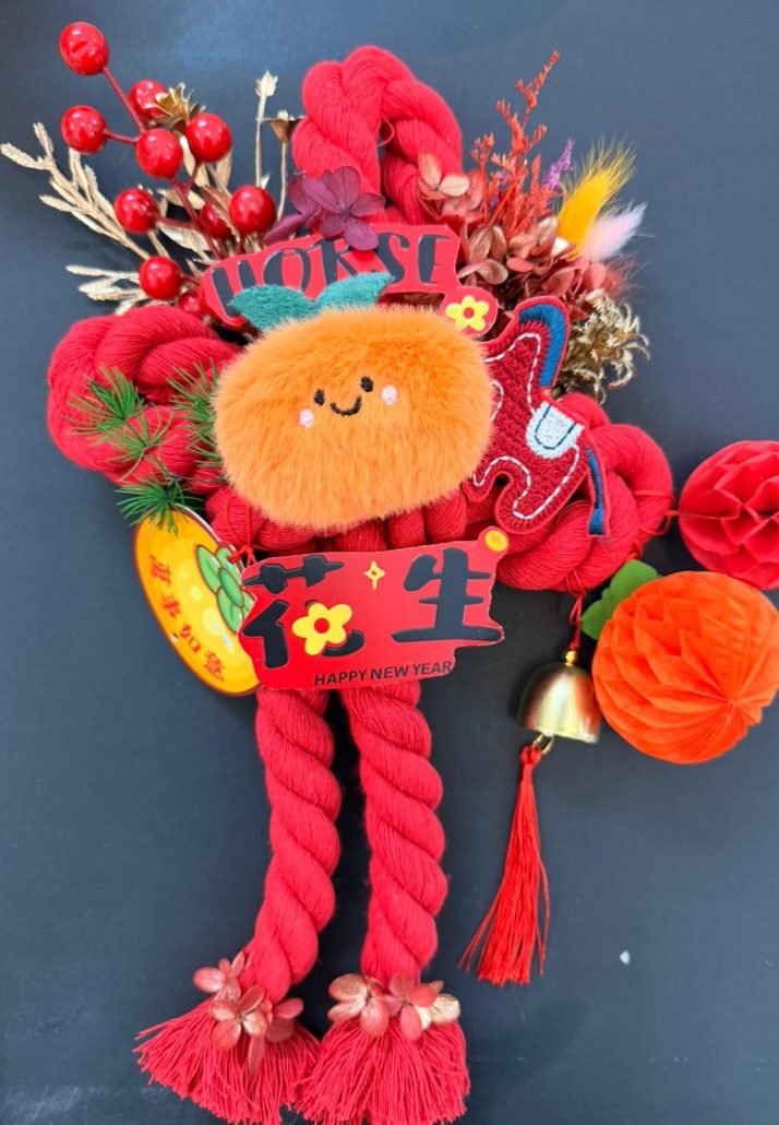 • 材料使用喜慶大紅色編織棉麻繩,掛飾上公仔均是精挑細選、富有濃厚新年氣氛!