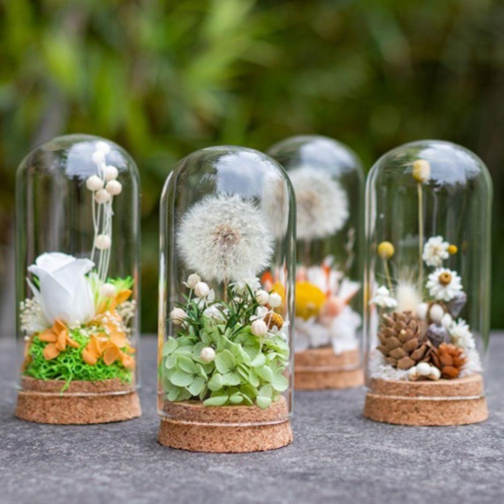 • 創造個人化微景觀:透過設計背景元素,打造獨一無二的玻璃罩擺設。