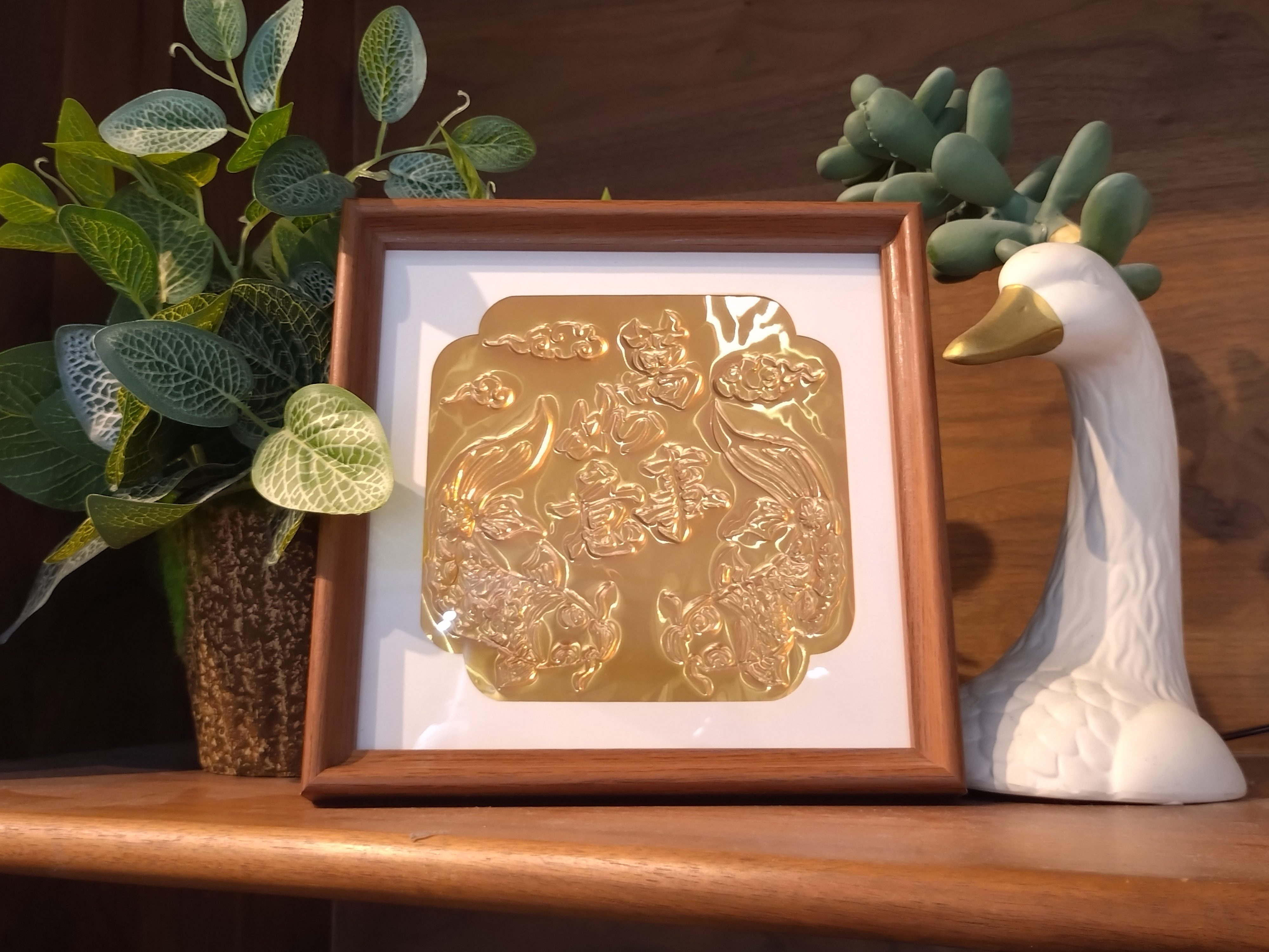 A 萬事如意!非遺仿鏨刻錫紙浮雕畫一幅 (約20cm x 20cm)
