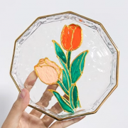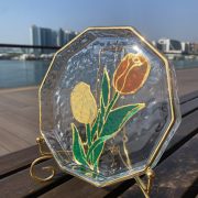 A 彩繪玻璃盤擺設一個 (尺寸: 16.5cm長 x 16.5cm闊)