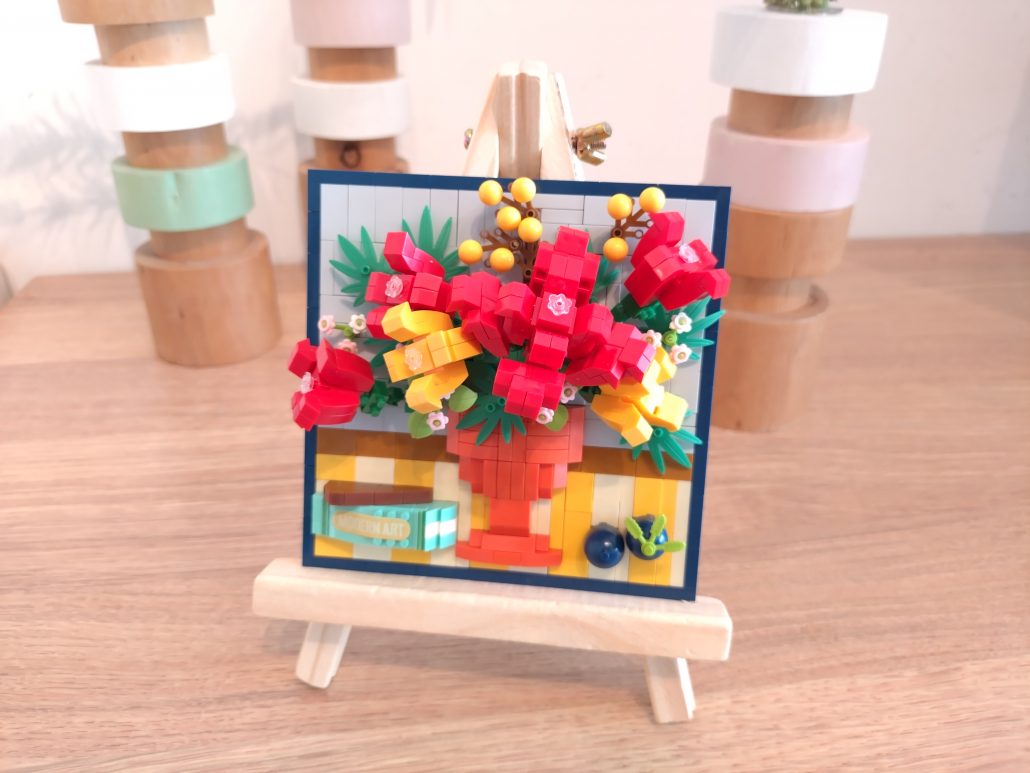 A 迷你積木立體花畫一幅連小畫架 (約14cm x 12cm x 20cm)