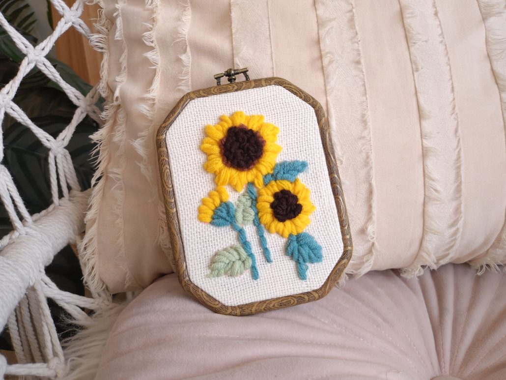 • 立體毛絨質感:Punch Needle技法能創造出柔軟立體的刺繡效果,使向日葵圖案更具層次感與溫暖氛圍。